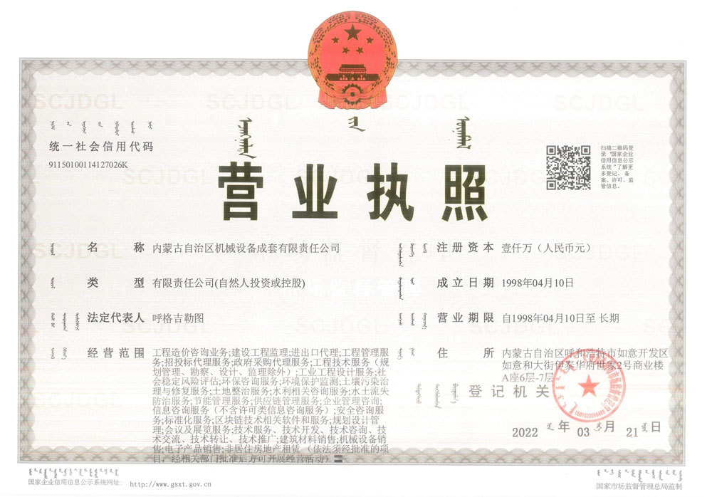 內(nèi)蒙古成套項目管理咨詢有限責(zé)任公司營業(yè)執(zhí)照